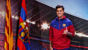 Coutinho posa como jogador do Barcelona pela primeira vez