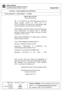 Machadinho: Edital de Citação – A empresa V. R. COSTA & CIA LTDA EPP é citada em ação processual 8 Janeiro , 2020 Sem comentários