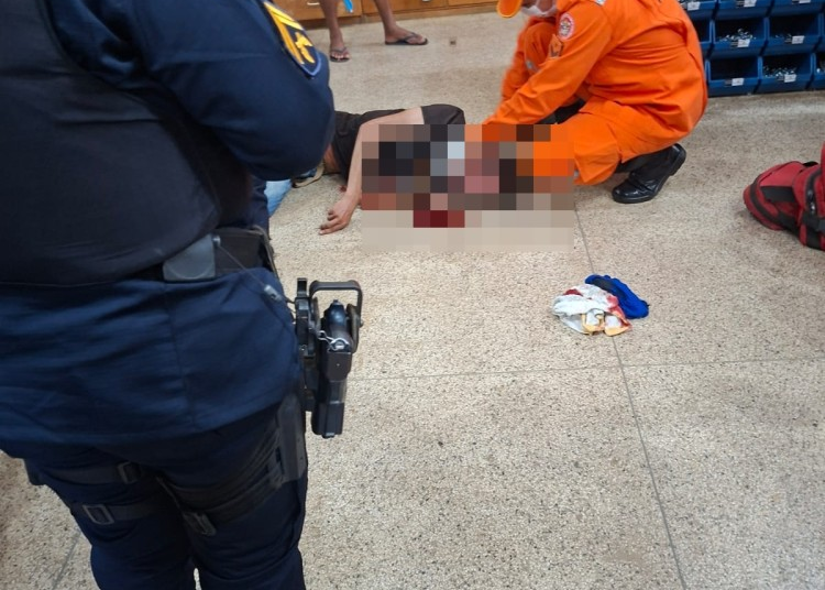 Após a ação, o homem caiu ao solo, causando pânico entre funcionários e clientes que estavam no local. Diante da gravidade da situação, o Corpo de Bombeiros foi acionado e prestou os primeiros socorros à vítima, que foi encaminhada ao Hospital Municipal para atendimento médico.