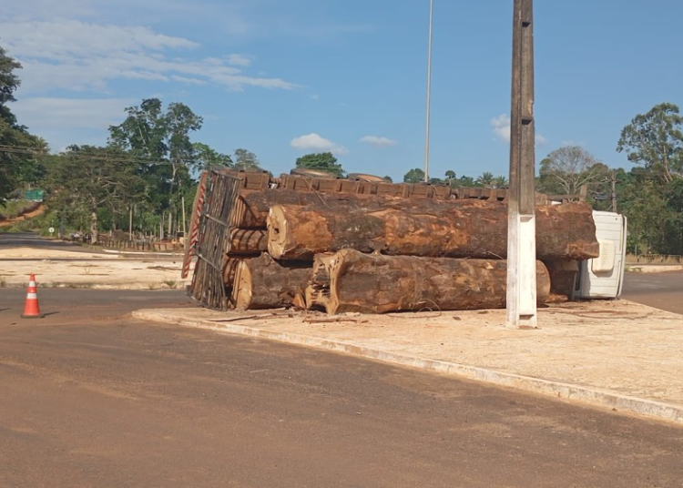 Um caminhão carregado com toras de madeira tombou na tarde desta quarta-feira, 19, no trevo que liga Jaru aos municípios de Theobroma e Governador Jorge Teixeira. O veículo vinha de Vale do Anari e seguia em direção a Jaru quando, ao realizar o contorno no trevo, acabou tombando.