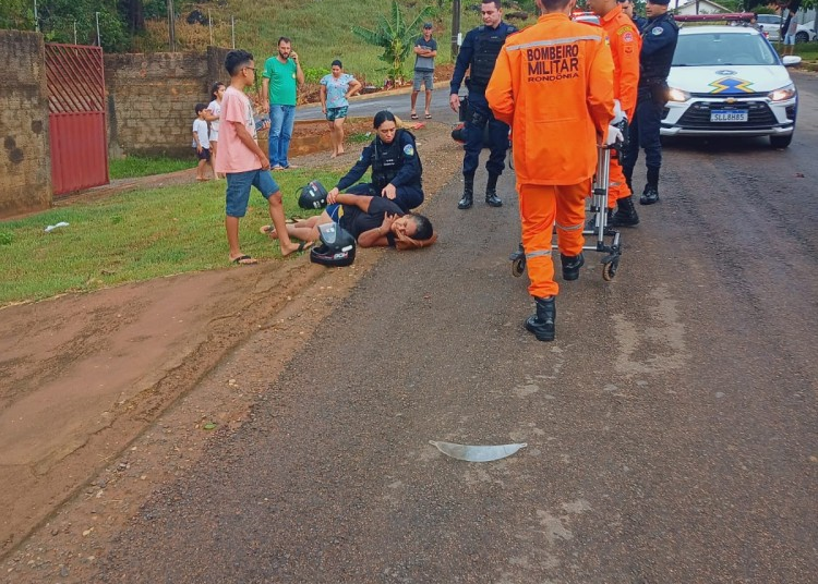 Com o impacto, as vítimas caíram e sofreram ferimentos — a mulher teve escoriações e queixava-se de dores na cabeça, enquanto o jovem apresentava lesões nas pernas. O Corpo de Bombeiros foi acionado e realizou o socorro das vítimas ao hospital, enquanto a Perícia Criminal realizou o levantamento técnico do local.