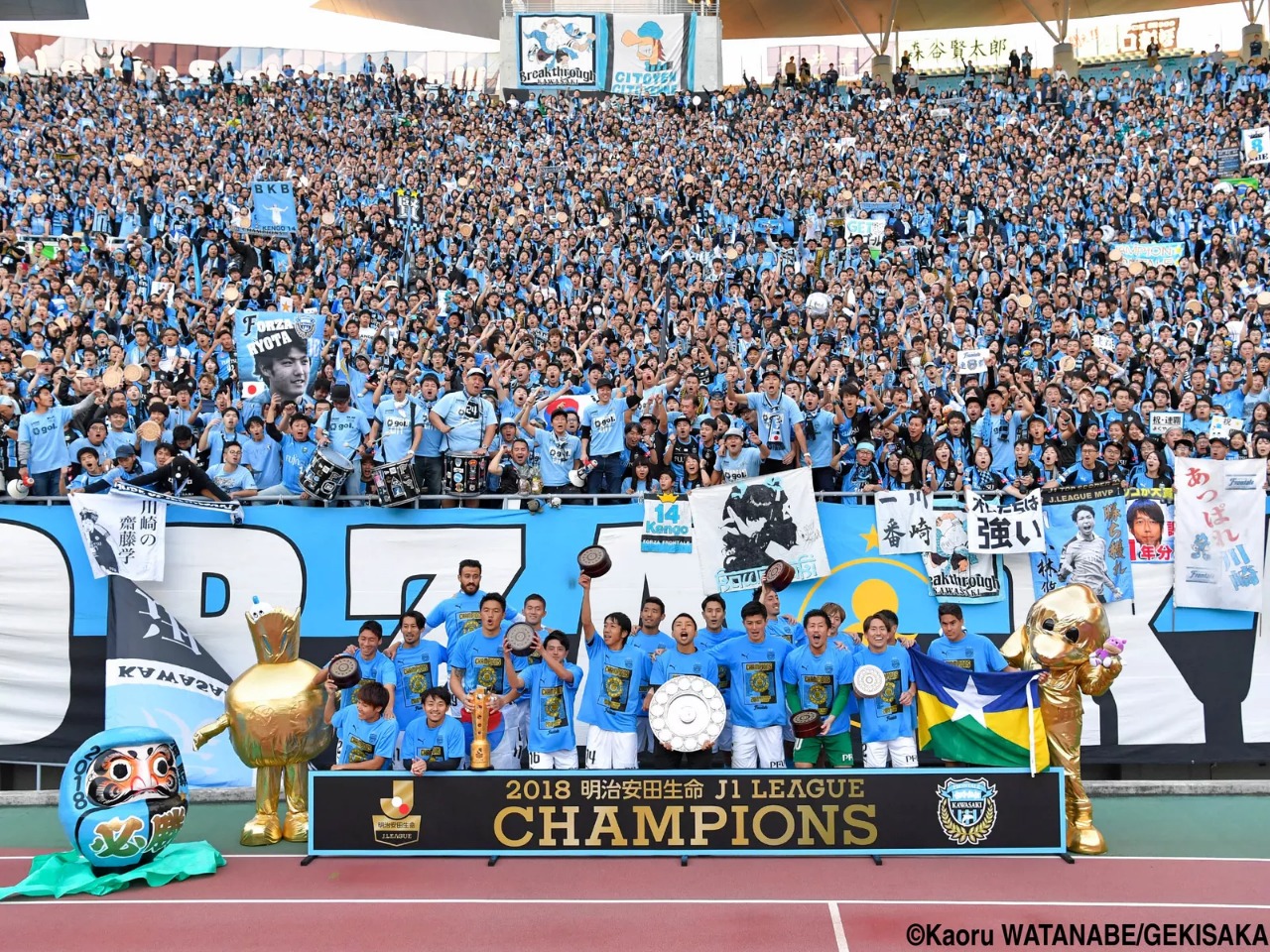 No último minuto, Yamamura surpreendeu e deu a vitória ao Cerezo por 2×1, o que não estragou a festa dos visitantes. Apesar de ter perdido uma invencibilidade de sete jogos, o Kawasaki sagrou-se campeão. Desde a conquista do Sanfrecce Hiroshima em 2012, um título da J1 não era decidido de forma antecipada. Coube ao zagueiro Shogo Taniguchi a honra de levantar o troféu primeiro (foto acima), já que o capitão Yu Kobayashi estava lesionado e só assistiu ao jogo das tribunas.