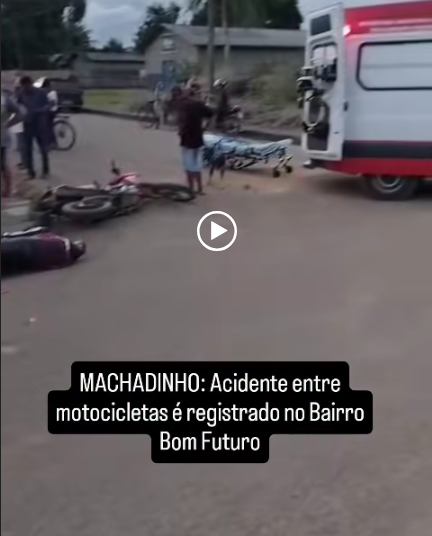 Um acidente envolvendo duas motocicletas foi registrado no cruzamento da Rua das Codornas com a Rua das Araras, no Bairro Bom Futuro, em Machadinho d’Oeste (RO).