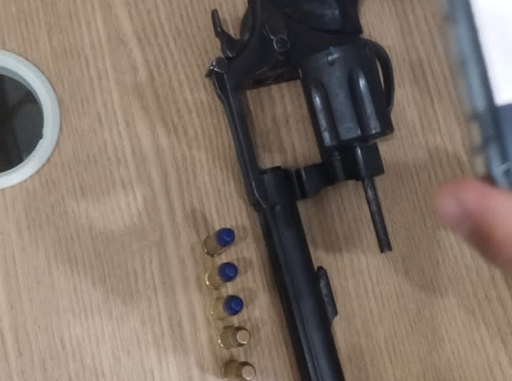 Na abordagem, o condutor do carro foi identificado e, durante revista pessoal, afirmou espontaneamente que havia uma arma no interior do veículo. Durante a busca veicular, os policiais localizaram um revólver calibre .38 sobre o banco dianteiro do carona.