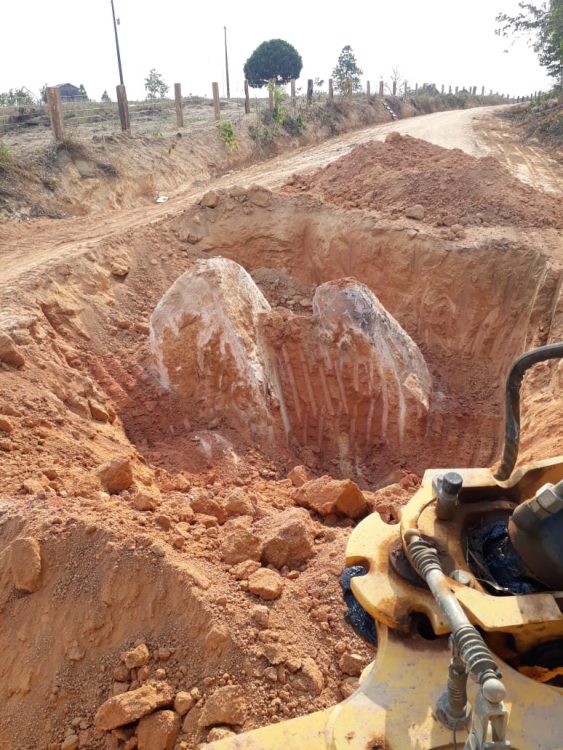 Roberto informou que apedido do Prefeito Leomar Patrício, os trabalhos na região da Pedra Redonda, foram intensificados e em atendimento ao pedido do prefeito, equipes realizam trabalhos de patrolamento das linhas, e em alguns casos, realizam a extração de rochas para dá trafegabilidade em alguns pontos das estradas, como mostra a foto seguinte.