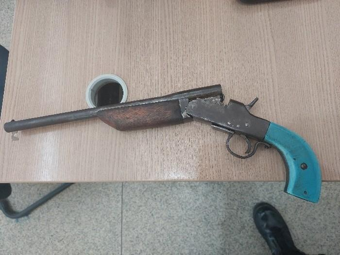 A guarnição questionou se havia arma de fogo na residência e, com o consentimento da moradora, realizou buscas no interior do imóvel. No quarto, dentro de um guarda-roupa, foi encontrada uma arma de fogo calibre 32, do tipo garrucha, acompanhada de 17 munições, sendo 11 intactas e 6 deflagradas. A posse irregular do armamento agravou a situação e reforçou o risco à vítima.